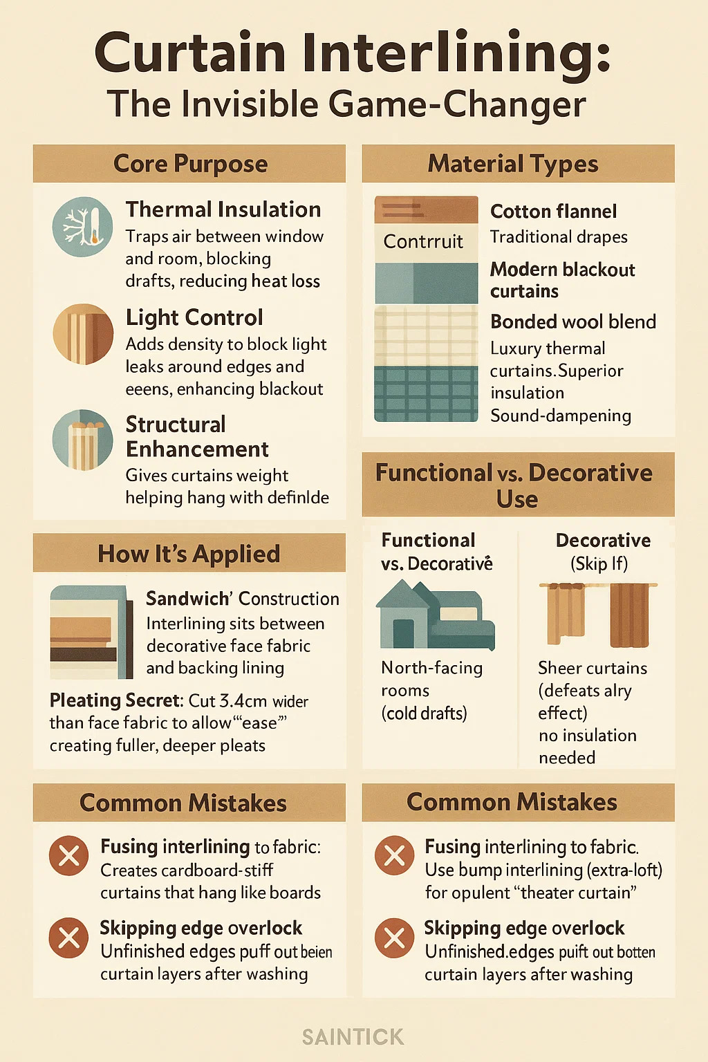 Fuzionarea interlining-ului cu țesătura: creează perdele rigide din carton care atârnă ca niște scânduri.